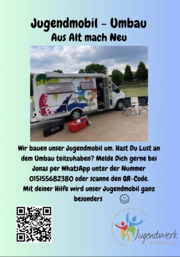 Wir sind auch in der aufsuchenden Jugendarbeit tätig. Mit dem Jugendmobil – einem speziell ausgestatteten Mobil – suchen wir Orte auf, an denen sich Kinder und Jugendliche in ihrer Freizeit aufhalten. Wir fahren öffentliche Plätze und informelle Treffpunkte an, um Kinder und Jugendliche so auch im öffentlichen Raum zu erreichen, um freizeitpädagogische Angebote vor Ort anzubieten und um Ansprechpartner für Jugendliche in ihren Lebenswelten zu sein.